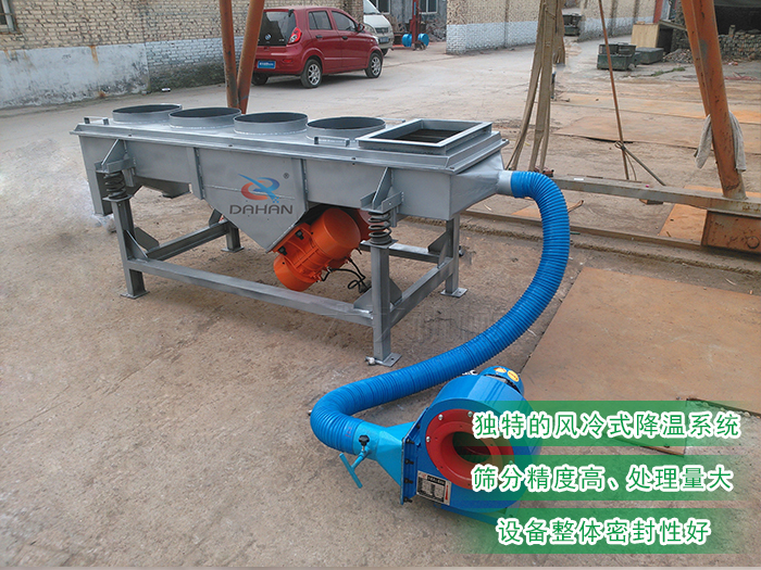 1、技術(shù)成熟,質(zhì)量可靠,篩分精度高、處理量大。獨(dú)特的風(fēng)冷式降溫系統(tǒng)設(shè)計(jì),快速有效降溫。適用范圍廣。可應(yīng)用于各種而要降溫的物料.