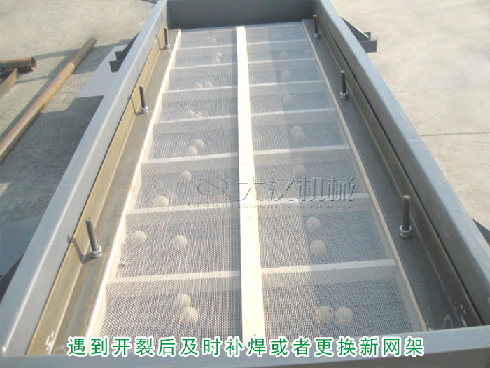 直線振動篩的篩網是由網架固定成型,所以應該檢查網架是不是有變形或開裂,遇到開裂后及時補焊或者更換新網架。