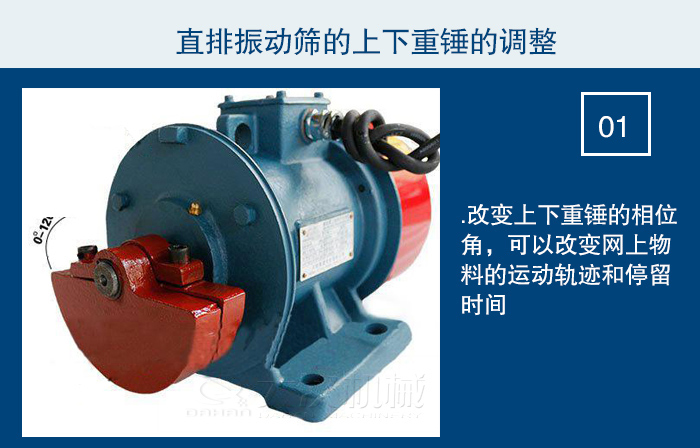 1.改變上下重錘的相位角,可以改變網(wǎng)上物料的運(yùn)動(dòng)軌跡和停留時(shí)間。為是篩機(jī)適應(yīng)各種物料所需求的分離狀態(tài),如物料的分布,處理量、過網(wǎng)率等各種變化,應(yīng)將它調(diào)整到最佳狀態(tài)。