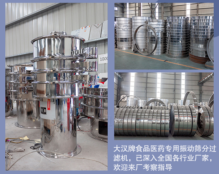 目前,大漢牌食品醫(yī)藥專用振動篩分過濾機(jī),已深入全國各行業(yè)廠家,歡迎來廠考察指導(dǎo),由您的建議我們會做的更好,大漢振動篩-致力于解決各種篩分難題,電話0373-2682333 聯(lián)系人:王現(xiàn)峰、24小時服務(wù)手機(jī)15893808811隨時恭候您的來電。